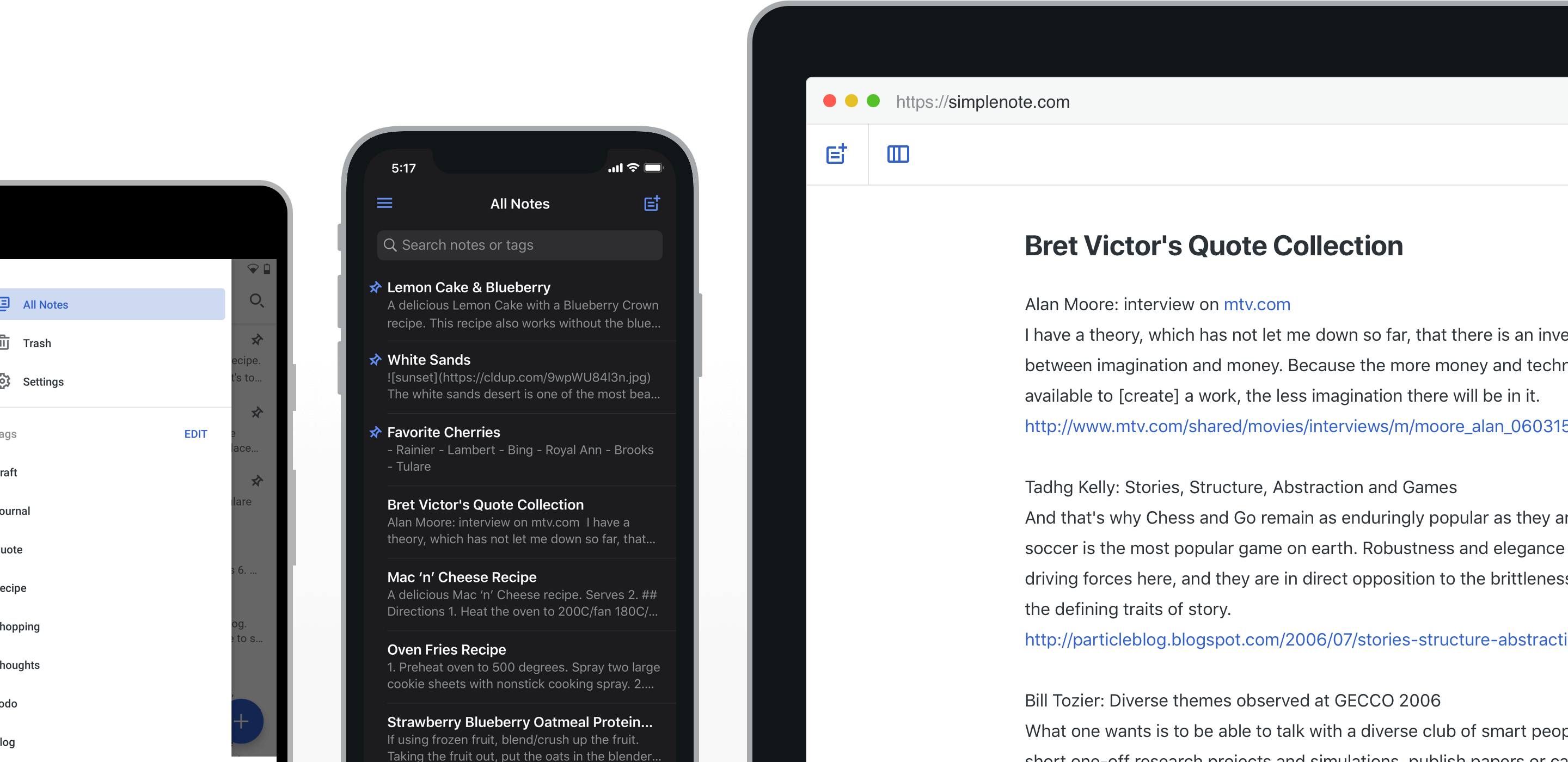 The simplest way to keep notes. Light, clean, and free. Simplenote is now available for iOS, Android, Mac, and the web.
