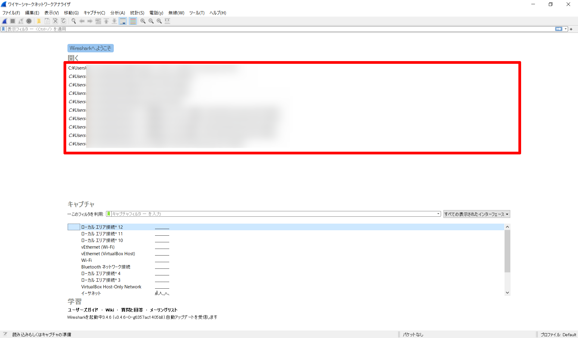 起動時のメインウインドウの上段には、過去に取得したパケット一覧(パス)が表示されます。 保存したパスを忘れたときなど、ダブルクリックすることで開きます。